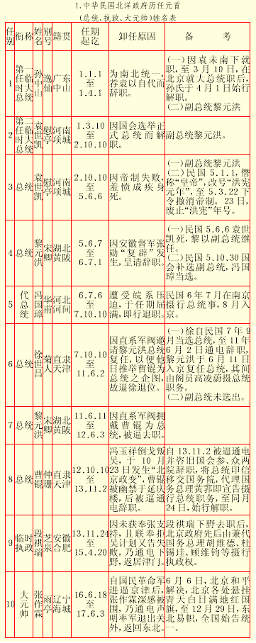 民国元年至17年北京政府名单1.中华民国北洋政府历任元首