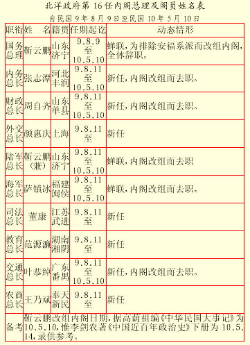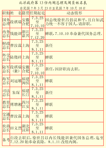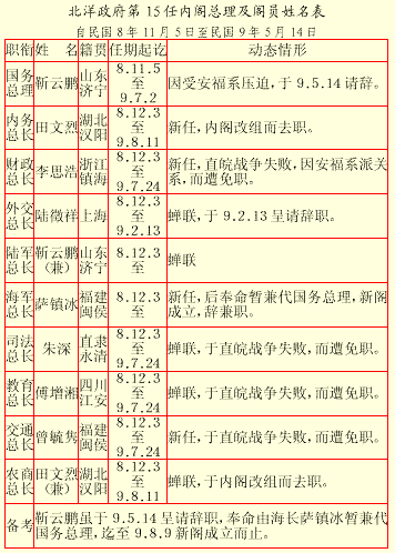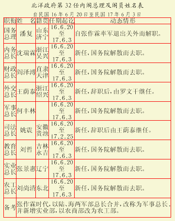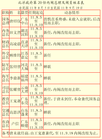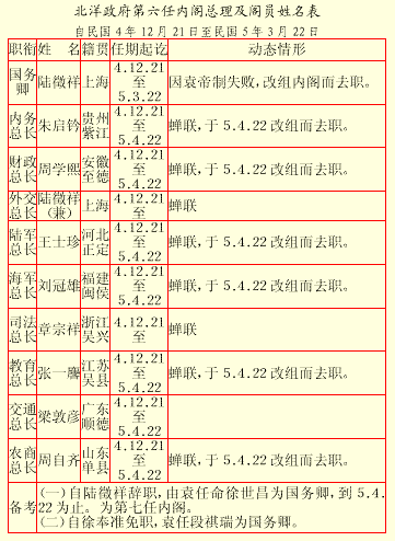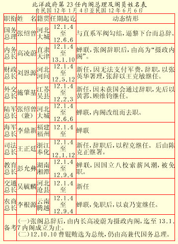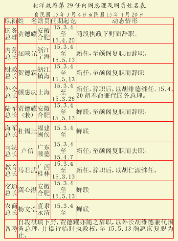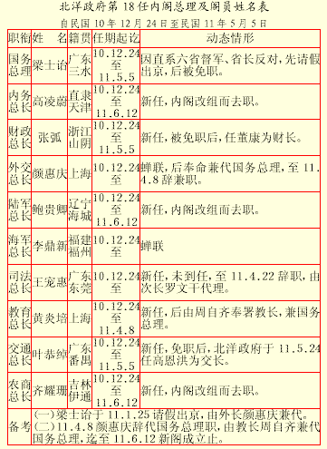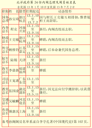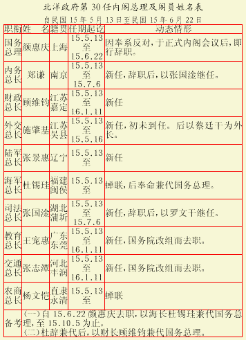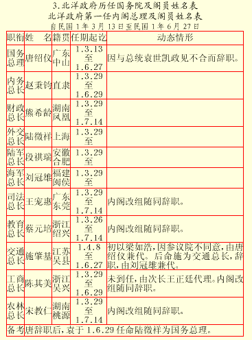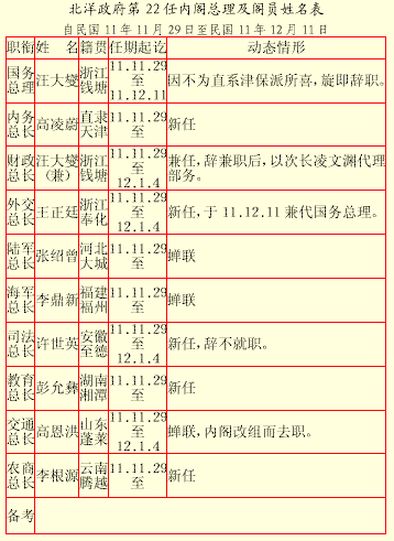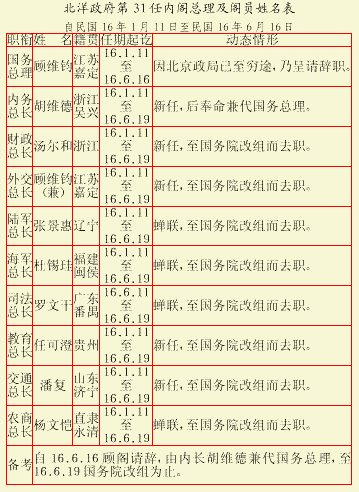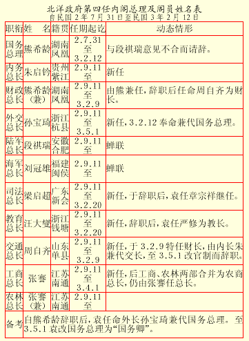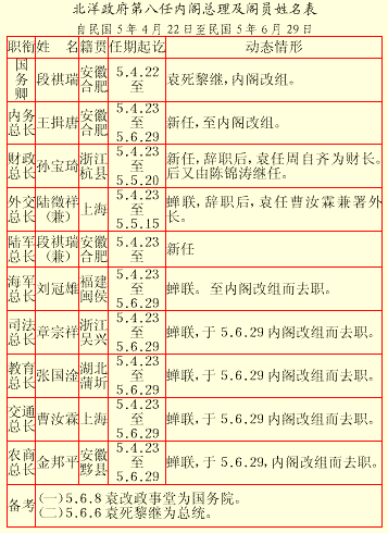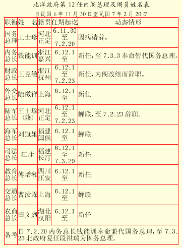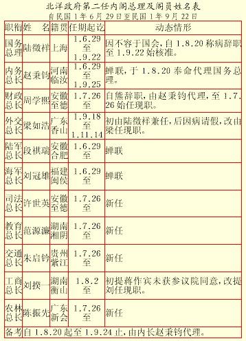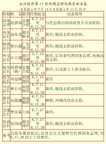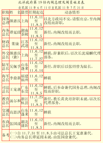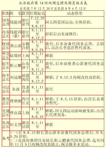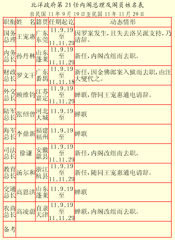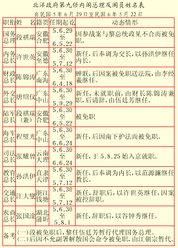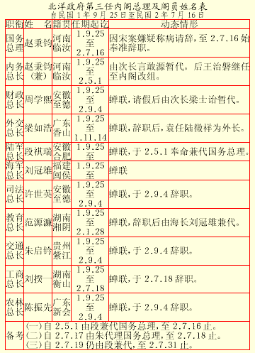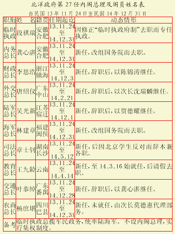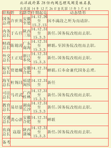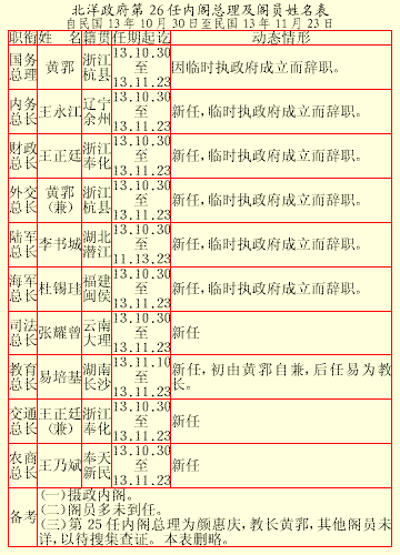 (一)本表系录自李剑农着《中国近百年政治史》下册第654页。惟阁员多未到任。 (二)据民国48.9.26香港《天文台报》刊载,伊思曼先生作《黄郛内阁与“首