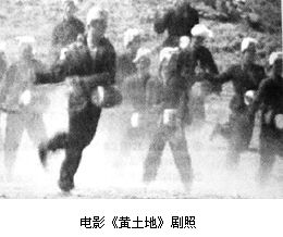 由陈凯歌导演的《黄土地》是“第五代”导演的代表作6.据陈凯歌自述,这部影片的剧本是电影厂派给他的,原作是个非常老套的故事,但他之所以获得再创造的机会,是因为整个故事都发生在陕北黄土高原上。“黄土地”成为整个影片的核心意象:画面构图始终以大面积的黄土为主,沟壑与土塬连绵不绝,山形地貌经岁月的销蚀,大起大落,高原一片荒凉,没有一点生命的痕迹。“黄土地”看上去或温暖、或冷漠、或贫瘠、或深广,总是传达出一种特别沉重和压抑的感觉,在影片中,它的意义已远不只是单纯的故事背景,成了整个民族的人格化的象征体。 在后来阐述导演意图时,陈凯歌说他是想要“以养育了中华民族、产生过灿烂民族文化的陕北高原为基本造型素材,通过人与土地这种自氏族社会以来就存在的古老而又最永恒的关系的展示”,来引出一 些“有益的思考”7.影片中陕北农民在黄土地上默默耕作的身影,显出一种巨大的韧性和耐力,但土地的凝重也映衬着心灵的闭塞、保守和无奈。电影的故事情节主要是从一个启蒙者的目光来看出这块古老土地上人民的愚昧落后:在黄土高原上搜集民歌的八路军文艺工作者顾青,唤醒了当地少女翠巧对自由生活的向往,但她却难以抵抗自己作为女性的悲剧命运,她所面对的是养育了她的亲人,是那种平静和温暖中的愚昧,最终她为自己的选择付出了死的代价。“黄土地”的象征意义就在于那种沉积在民族文化深处的保守性格和无法挣脱天命的悲剧感。