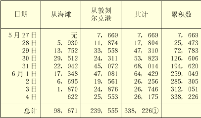祝愿和祈祷仪式——“沉重的坏消息”——阁员的表现——小型船只的集结——七百艘船只——三个重大因素——“蚊式”舰队——撤退法国人——给戈特勋爵的最后命令——一个可能的结果——戈特把敦刻尔克的指挥权交给亚历山大——5月31日我第三次访问巴黎——斯皮尔斯将军和贝当元帅——撤退完成——6月4日我向议会发表的演说——空军胜利的重大意义——英国的决心。 威斯敏斯特大教堂在5月26日举行了一个简短的祝愿和祈祷仪式。英国人不愿意把他们内心的感情形之于外表,但是,我坐在歌唱班的座位上,也能感觉到那种郁积在心的激昂情绪,感觉到会众有害怕的心情,不是怕死、怕伤或者怕物质的损失,而是怕英国被战败和最后灭亡。 ※ ※ ※ 那一天是5月28日星期二,到这一天我已经一个星期没有去下院了。在这段期间再发表什么声明是没有什么益处的,议员们也未曾向我提出这个要求,但是每一个人都认识到,我们军队的命运,甚至还有比我们军队的命运更重要的事情,很可能在这个星期还没有过完之前就最后决定了。“下院,”我说道,“应当对沉重的坏消息有所准备。我只补充这么一点,在这次战争中,无论发生什么事情,都不能使我们放弃我们要誓死保卫世界正义事业的职责,也不能摧毁我们有力量勇往直前的信心,正如在我们历史上的许多关键时刻一样,我们有力量冲破重重困难,直到最后打败我们的敌人。”自从政府组成以来,在内阁成员之外,我只与个别人见过面,而没有会晤更多的同僚,因此我觉得在我的下院办公室内召集战时内阁成员以外的所有内阁级大臣开一次会,是很有益的。我们在座的大约有二十五人。我阐述了事态的过程,并且坦率地向他们说明了我们的处境,以及一切成败难卜的事情。然后我不把它当作是一件具有特殊意义的大事,而只是漫不经心地说道: “当然,无论在敦刻尔克发生了什么事情,我们也要战斗下去。” 这时阁员的表现使我感到惊奇,因为,就这次聚会的人物来说,这二十五个人都是有经验的政治家和议员,对战争的看法,不论正确与否,观点都很不相同。有许多人一下从座位上跳起来,跑到我的椅子旁边,一面喊叫一面拍我的背。 毫无疑问,在这紧要关头,如果我在主持国家的方针大计上稍有踌躇,我会被他们赶下台的。我确信,每个大臣都已下定决心,宁愿马上牺牲生命,家庭和财产全遭毁灭,也不愿屈膝投降。他们的这种表现,代表了下院,而且可以说是代表了全体人民。在这以后的几天和几个月中,我每遇适当的场合便表述他们的心情。我是能够表述他们的心情的,因为他们的心情也正是我的心情。一股不可抗拒的熊熊烈火燃遍了我们这个岛屿的每个角落。 ※ ※ ※ 关于英国和法国军队从敦刻尔克撤退,已有翔实而完善的记载。自从20日以来,舰只和小型船只的集结便已在多佛尔港司令官拉姆齐海军上将的指挥下进行。26日晚,(下午6时57分)海军部一声令下,“发电机”作战计划便开始实行,第一批军队就在那天夜里运回国来。当布洛涅和加来失陷后,只有敦刻尔克港和连接比利时边境的开阔海滩还在我们手里。这时,我们认为,我们最多只有两天时间救出大约四万五千人。翌晨,5月27日,采取紧急措施,搜寻更多的小型船只,以“应付特殊的需要”。这不得少于足敷撤退全部英国远征军之用。显而易见,除了较大的船只从敦刻尔克港装载士兵外,还需要大量的小型船只,以备在海滩应用。依照海运部里格斯先生的建议,由海军部官员从特丁顿到布赖特灵锡之间的各个船坞中找到了一共四十只可用的汽艇,第二天便集中在希尔内斯。同时,伦敦各码头定期航轮上的救生艇、泰晤士河上的拖船、快艇、渔船、驳船、平底船和游艇,只要可以沿海滩使用的运输工具,都一律征集备用。27日夜间,所有的小型船只像潮水似的涌向大海,先到我们的海峡港口,再从那里开往敦刻尔克,到达我们热爱的军队的身边。 一旦不需要保密了,海军部马上就放手让我国南方和东南沿海一带船民普遍自发的行动充分开展起来。凡是有船的人,无论是汽船或帆船,都开往敦刻尔克;幸而准备工作一个星期前就着手进行了,现在又有许多人纷纷自愿前来积极支援。29日开来的小型船只数目还不多,但是它们是以后开来的将近四百只小型船只的前驱,这四百来只船起了极重大的作用,从31日起,把大约十万人从海滨渡送到了远离海岸的大船。在这几天里,我没有见到我的海军部地图室主任海军上校皮姆和其他两三个经常见到的人。他们驾驶了一艘荷兰小船,在四无内运送了八百人。在敌人不断空袭之下,前往营救军队的船只共计约八百六十艘,其中将近七百艘是英国的,其余是同盟国的。 ※ ※ ※ 官方的统计数字表(表中不包括未参加载运军队的船只)如下:
